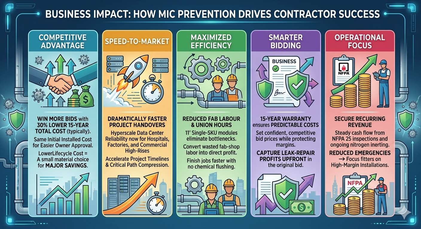 Insurance Arbitrage Potential: By eliminating the root cause of MIC and securing a 15-Year Leak Warranty, facility owners gain significant leverage to negotiate reduced property insurance premiums with their underwriters.